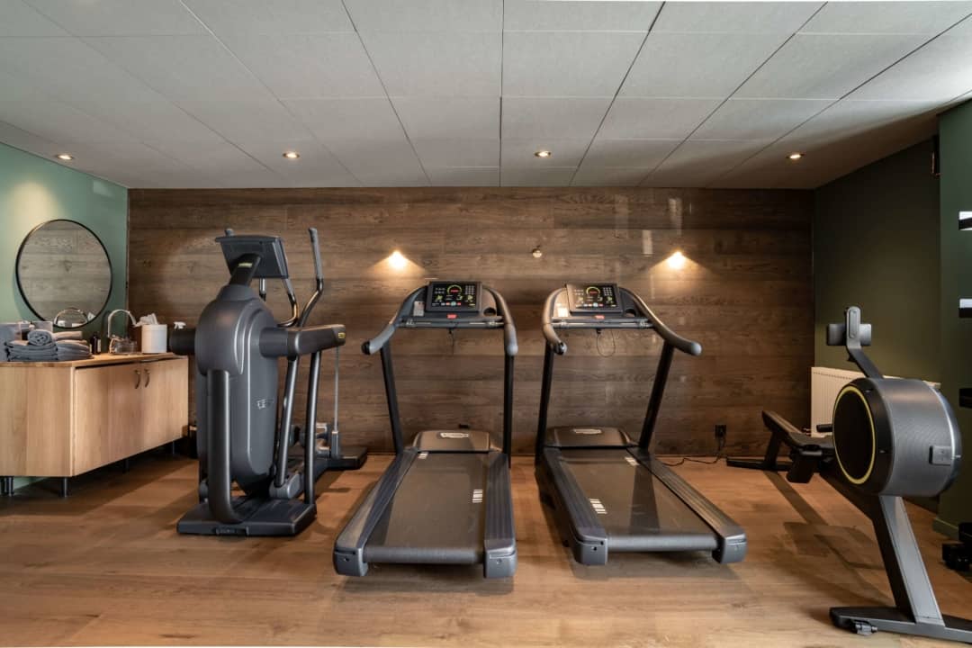 Here you can find both treadmill, spinning bike, a cable machine and free weights for